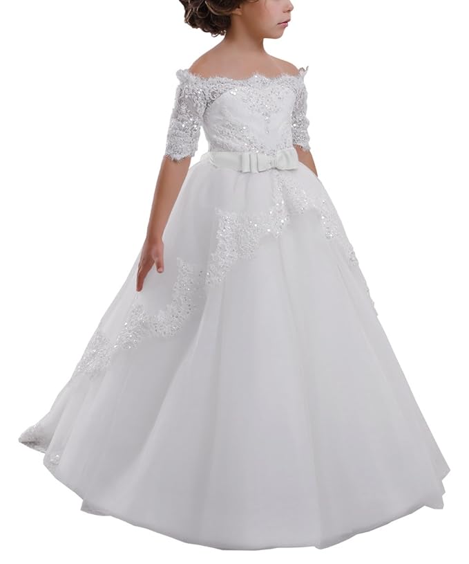 A line Wedding Pageant Lace Flower Girl Dress with Belt 2-12 Year Old