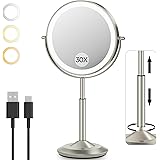 $23.80 (as of 21:23 GMT -05:00 - More infoProduct prices and availability are accurate as of the date/time indicated and are subject to change. Any price and availability information displayed on [relevant Amazon Site(s), as applicable] at the time of purchase will apply to the purchase of this product.)VFD 30X/1X Makeup Mirror with Lights, Height Adjustable Lighted Magnifying Vanity Mirror with 3 Lighting and Adjustable Brightness, 3000mAh Rechargeable Double Sided Switch for Desk Women Gift