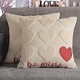 4TH Emotion Be Mine Valentine's Day Decorative Pillow Covers 18x18 inch Set of 2, Beige Soft Plush Faux Fur Farmhouse Throw Cushion Cases for Spring Holiday Home Decor